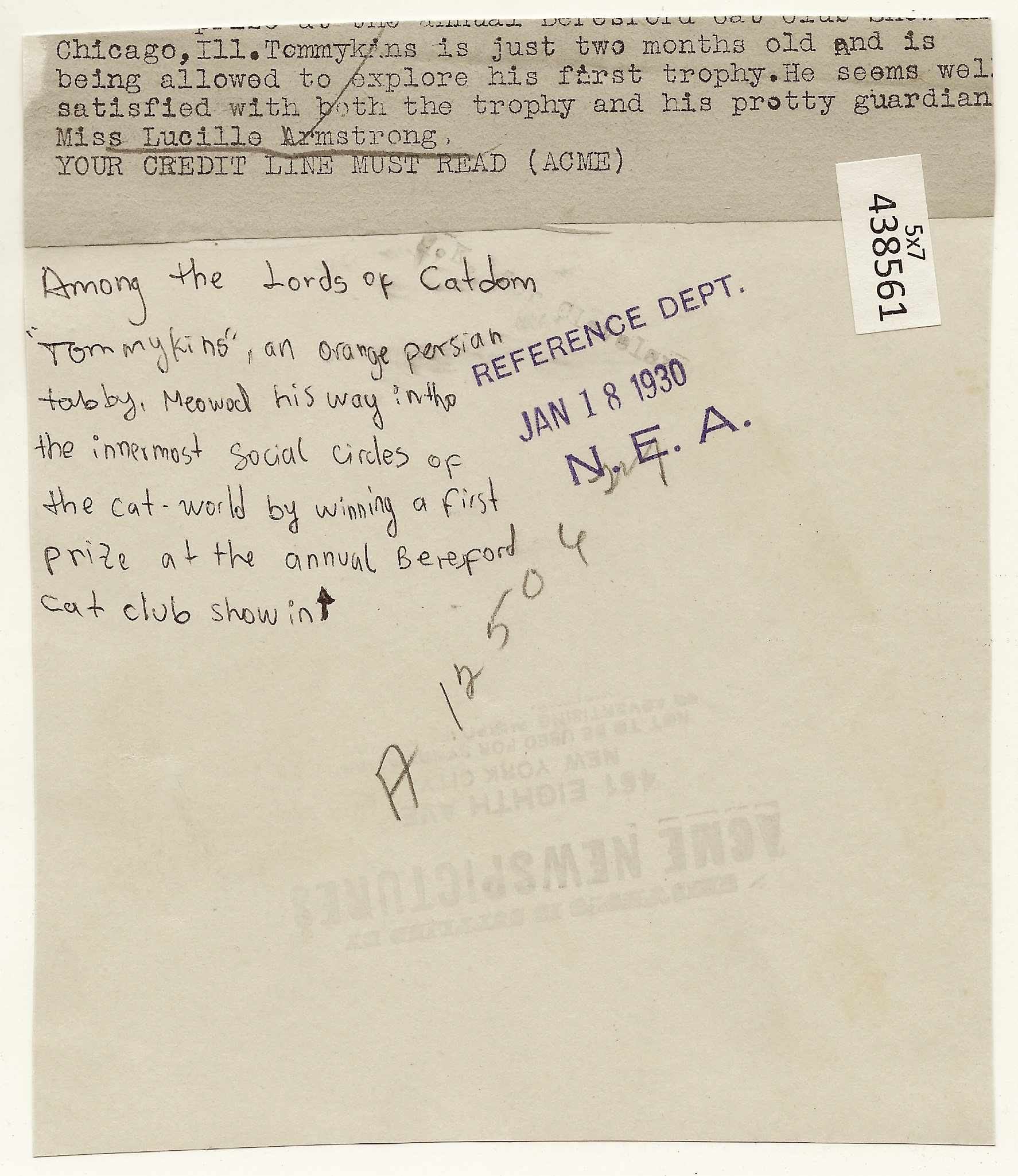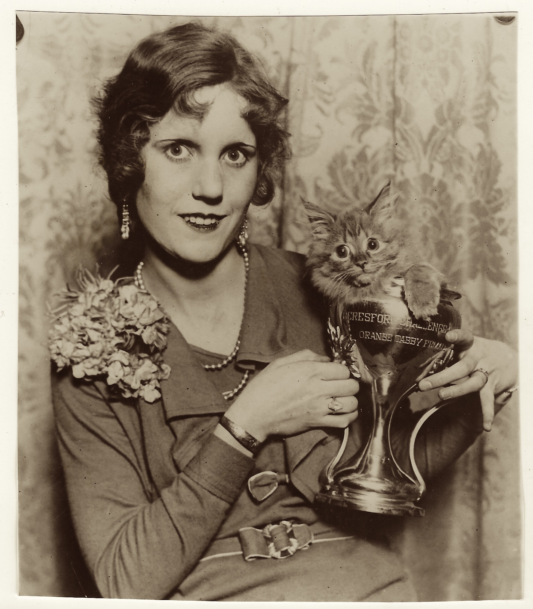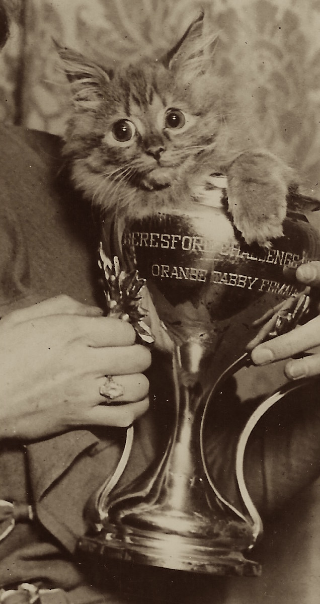 This vintage real photo postcard features an adorable little girl hugging her tortoise shell tabby cat. The child appears entranced by the gorgeous feline. This postcard was published by Alfred Noyer. He was a well known and acclaimed photographer. His Paris studio operated between 1910 and the 1940’s. This postcard is dated in the year, 1920. The card is color tinted and part of a series (no1352). I used an online translation app to learn the meaning of the caption at the bottom of this photo postcard. The translation is “kiss the mistress – he turns a deaf ear: have we, I ask you, such demands“. The quotation puts a spotlight on the strong independent nature of house cats. This real photo postcard is in very good condition (see scans).