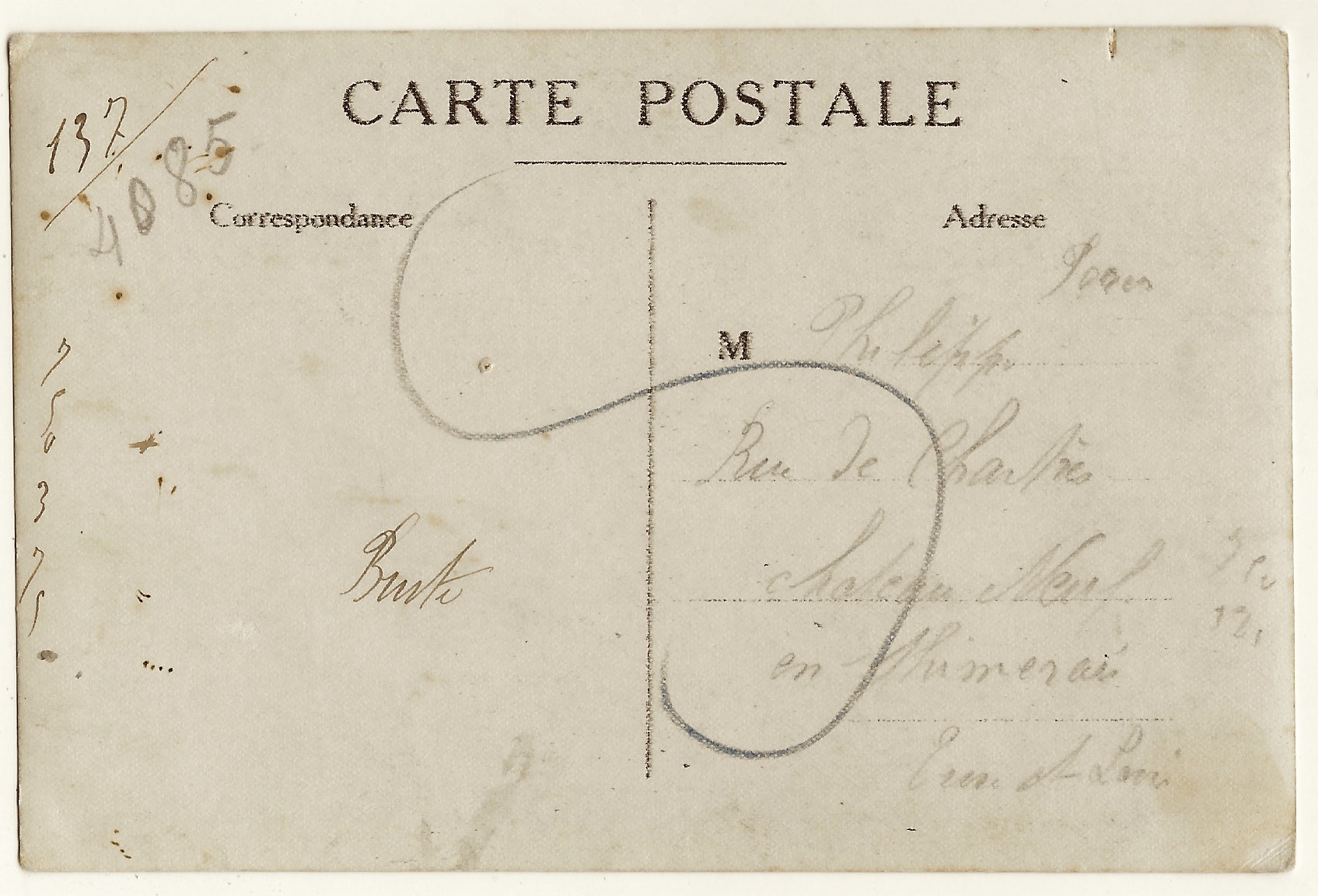 This vintage real photo postcard features a portrait of two French World War I infantry men. The French often informally referred to World War I infantry men as “Poilu”. The term can be translated as “hairy ones” and it was used as a form of endearment. Many of these men came from rural background and sported beards and bushy mustaches. They were known as tough and brave but not exactly obedient to their officers.The men in this photo are wearing pins on their collars which indicate that one soldier is from the 24th and the other is from the 36th infantry regiment. One soldier has a patch on his upper left sleeve. What does the patch represent? The previous owner of this photo postcard asserted that the patch indicates that the men were members of the telegraph corps. I can not confirm that claim. This vintage postcard is in good condition (see scans).