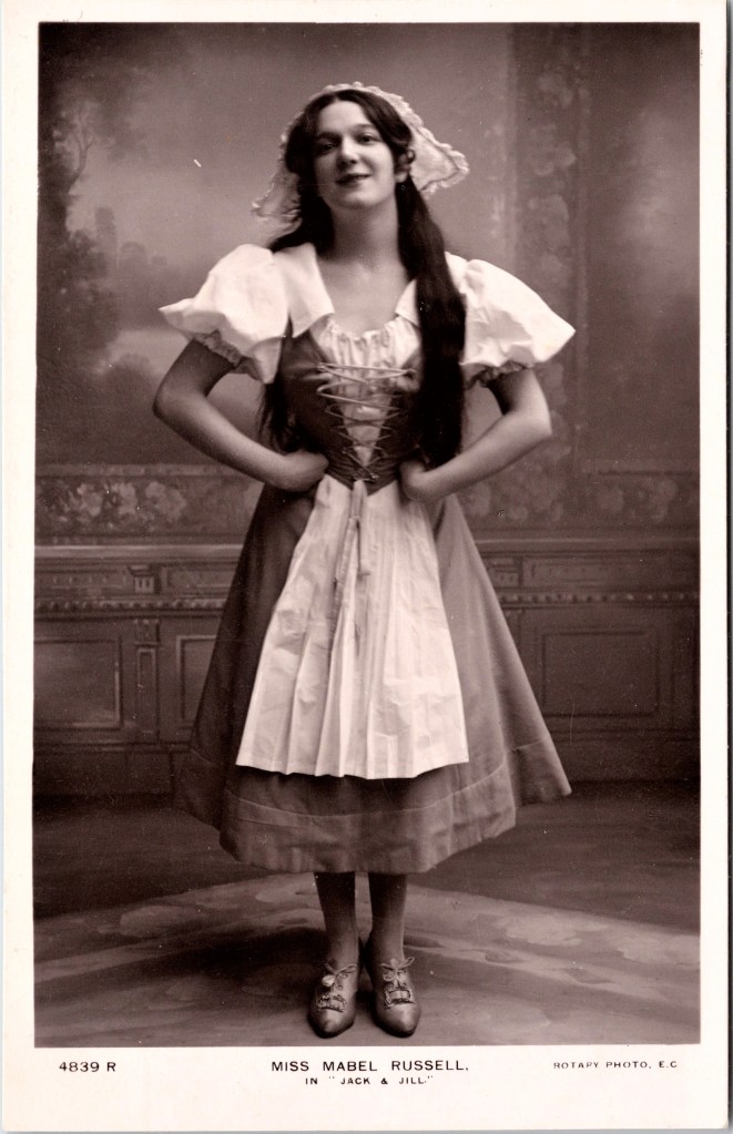 Postcard 4 features Miss May in costume for one of her theatrical roles. Note her pretty lacey hat and pigtails. This postcard was published by Rapid Photo as part of a series (No.2378). It was printed in Great Britain. The card has a 1905 postmark. (SOLD)
