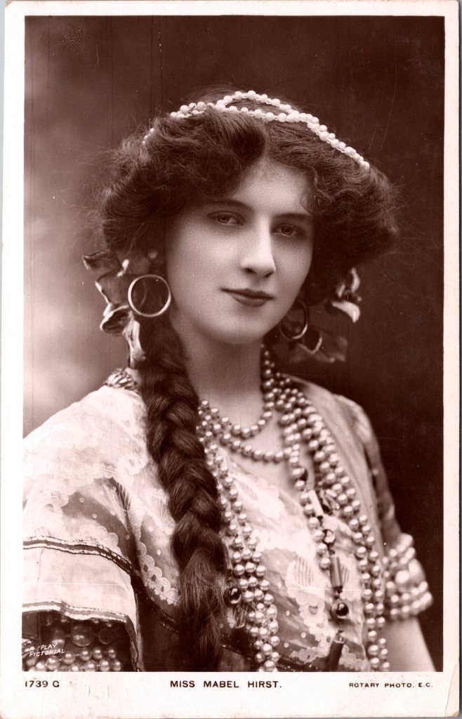 Postcard 1 features German actress, Emily “Emmy” Wehlen (1887-1977). She was a Edwardian musical comedy and silent film actress. She retired from acting at a young age (early 30’s), Wehlen received her musical training at the Mannheim Conservatory. She then joined the Thalia-Theatre and performed in musical comedies in several German cities. She was then invited to London and was considered as a possible successor to Lily Elsie. Wehlen played the lead role in “The Merry Widow” (1909). Later that year she appeared in the hit musical “The Dollar Princess” which ran for 428 performances. Next stop was New York, where she appeared in four Broadway plays between 1911 and 1915. Shortly after her last Broadway appearance, Wehlen left the stage and pursued a film career. She appeared in over twenty films between 1915 and 1920. “Everybody’s Magazine (1911) reported that Wehlen was very pretty and very graceful. Her acting and voice were also praised. In addition, the article stated that “she has the indescribable charm of personality” and that audiences liked her and wanted her to never leave the stage during a production. Miss Wehlen’s photograph on this postcard was taken by celebrity studio, Foulsham & Banfield. The card was published by Rotary Photo as part of a series (no.11717H).