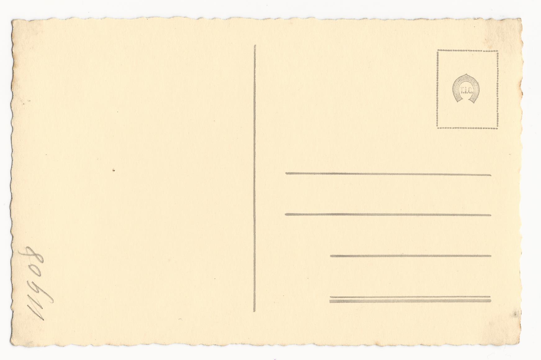The photo portrait used for Postcard 1 was taken by Dobson Studios which was located in Liverpool, England. This postcard was published by Thomas Illingworth & Co. (T.I.C.). The company was a paper manufacturer founded about 1904. They produced the “Horse Shoe Brand” photographic paper in London England. In 1919 they were bought by British Photographic Supplies company, Ilford. An internet source states that the company produced postcards with horseshoe stamp boxes between 1919 and 1930. (SOLD)