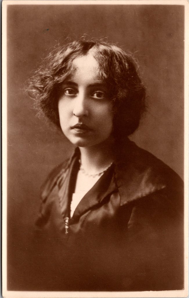 These vintage real photo postcards feature a sweet, pure, and innocent looking English actress named Dorothy Ward (1890-1987). Her specialty was pantomime and she often performed with her husband, Shaun Glenville. She made her stage debut in Birmingham in 1905 in the production of “Blue Beard”. She was an overnight success and went on to a successful career in theater. In fact, she was considered a mainstay of of British Music Hall and Variety for many decades. She was described by music historian, W. Macqueen-Pope, as a “handsome and striking woman, with auburn hair, wonderful carriage and fine figure…Tights become her, they are second nature to her and she understands pantomime and its topsy turviness”.