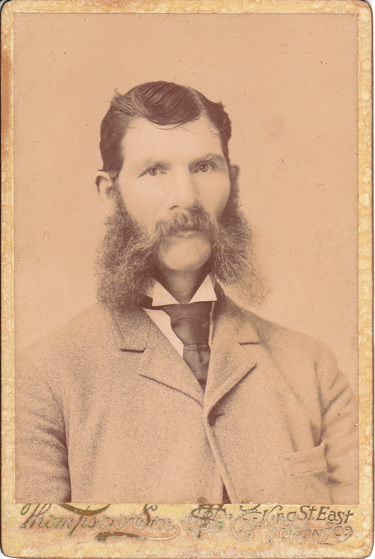 This cabinet card features a man with a noteworthy mustache. The photographer is Thompson and Son’s, located at 75 King Street, in Toronto, Canada. To view other terrific mustaches, click on Cabinet Card Gallery’s category “Mustaches (Only the Best).