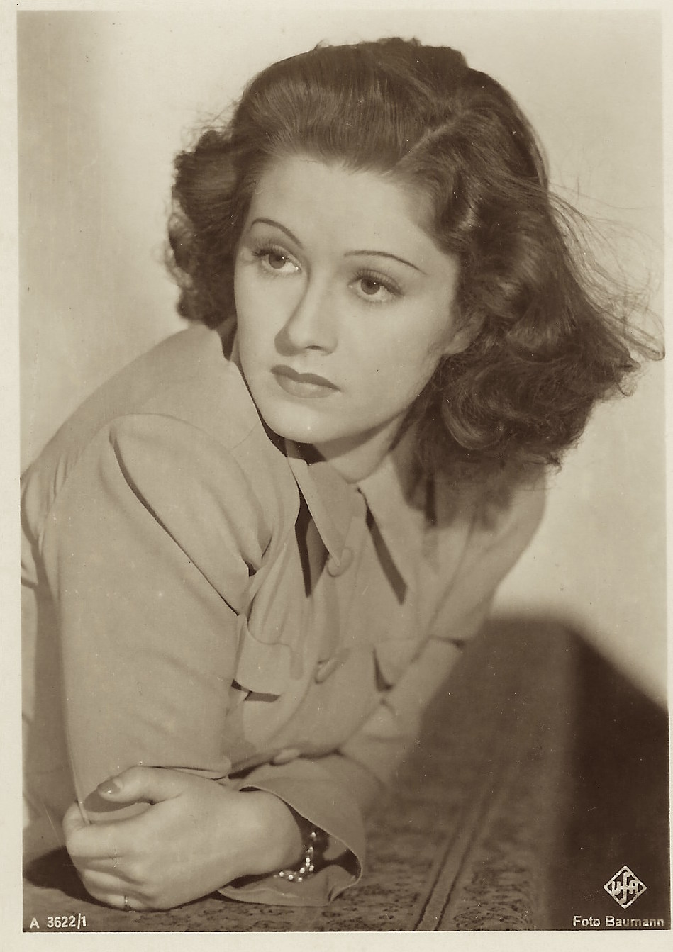 These two real photo postcards feature German film actress Marina von Ditmar (1914-2014), a leading lady of the 1930’s and 40’s. . She was born in the Russia Empire and was of Baltic German descent. When she moved to Germany she studied acting. Her first roles were appearances at Schauspielhaus, Bremen, and the Altes Theater (Leipzig). In 1937 she joined the ensemble at the Volksbuhne in Berlin and by 1940, she was a permanent actress at this venue. Her first major movie success was in “The Csardas Princess” (1934). In 1943, she starred in “Muchhausen”, a film that had great commercial success. Von Ditmar was also well known for her role in “The Big Shadow” (1942). She appeared in several Nazi propaganda film including Stukas (1941). She married D. Hans-Georg Dehnhardt (1913-2001), a leading physician and owner of a sanitarium, Soon after her marriage, she retired from acting. The IMDB credits Miss von Ditmar with thirty film roles. The top postcard was published by Film-Forto-Verlag and was part of a series (A 2622/1). The photographer was Baumann and there is an advertising logo for the German film company UFA. The bottom postcard was also published by Film-Foto-Verlag and was part of a series (no. A 3926/1). The photographer was Binz and there is an advertising logo for Prag Films. The Prag company produced 14 films between 1943 and 1945. Many of the people employed to produce these films were Czechs who were forced by war time German authorities to produce these films. The photographer, Tita Binz (1903-1970), was German and she photographed many film stars of the Third Reich, She also made portraits of the soldiers who earned the Knight’s Cross (the highest military award in Nazi Germany). Binz began her career by apprenticing in Paris between 1928 and 1930. She was an apprentice for her uncle, the celebrated photographer, Leopold Reutlinger whose studio was opened in 1850 and became of the worlds most renowned studios. Binz settled in Berlin and worked for various photo studios until opening her own studio in 1938. She specialized in portrait photography and photographed actors, artists, politicians, and other celebrities. One of her clients was the publisher Film-Foto-Verlag (formerly Ross Verlag). The founder of the company, Heinrich Ross was forced out in 1937 by the National Socialists because he was Jewish and Jews were not allowed to own businesses. Ross Verlag retained it’s name until 1941. Film-Foto-Verlag became known for it’s postcard portraits of film stars of the German and Italian cinema. Today, many of Binz’s photo portraits can be found in the collection owned by the Deutsches Historisches Museum in Berlin.