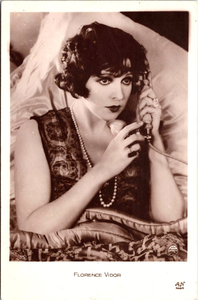 This vintage real photo postcard features American silent film actress, Norma Talmadge (1894-1957). She was noted for her dramatic and emotionally intense performances. She was one of the most popular and highly paid actresses of her era. She starred in over 200 films during her career. Raised in a show business family, Norma and her sisters Constance and Natalie Talmadge all became successful actresses. Norma began her acting career on the stage, performing in vaudeville and musical comedies. Initially, Talmadge worked for Vitagraph Studios before signing with D.W. Griffith’s Triangle Film Corporation, where she gained recognition for her talent. In the 1910s and 1920s, Talmadge became a major star, known for her ability to portray a wide range of characters. She excelled in dramatic roles, often playing heroines with complex emotions. Some of her notable films include “The Probation Wife” (1919), Smilin Through (1922), Camille (1926), and “New York Nights” (1929). Norma Talmadge was one of the few silent film stars who successfully made the transition to talkies. However, as the era of sound films emerged, her popularity waned. After her last film in 1930, Talmadge retired from acting and focused on her personal life. She married the film producer Joseph M. Schenck in 1916, and together they founded the Norma Talmadge Film Corporation. The company produced several successful films, contributing to Talmadge’s financial success and status as one of the highest-paid actresses of her time. However, her marriage to Schenck eventually ended in divorce in 1934. After her retirement from acting, Talmadge lived a private life, seldom making public appearances. She remarried in 1946 to Carvel James, a wealthy oil broker, and they remained together until her death. This vintage postcard is part of the “Picturegoer” series (No. 145B). SOLD