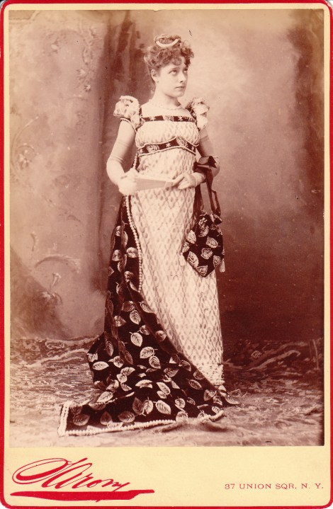 Emma Loraine appears to have been a minor stage star. The New York Times (1879) reported that Wallack’s Theatre production of “Our Girls” included Ms. Loraine in the cast. Also in the cast was Maurice Barrymore. The New York Times (1881) has a story about the Wallach company going on tour because their new theatre was under construction. The company was planning to perform “She Stoops to Conquer” and “The School for Scandal” while on tour. Performing as part of the touring company was Osmond Tearle, Rose Coghlan, and Emma Lorraine. The cabinet card gallery has images of both Tearle and Coghlan that can be viewed by typing each of their names in the search box. Their names must be searched separately. Both cabinet card portraits of Loraine were photographed by celebrity photographer, D. H. Anderson of New York City. To view other images by Anderson, click on the category “Photographer: Anderson (New York)”. An article in the Photographic Times and American Photographer (1883) describes Anderson’s studio at 785 Broadway in New York City. The location was formerly the studio operated by famed photographer, Mathew Brady. Anderson is considered a pioneer in early photography. He made his first pictures (daguerreotypes) in Paducah, Kentucky in 1855. He later worked in Cincinnati (Ohio), Dayton (Ohio), New Orleans (Louisiana), Louisville (Kentucky), and various other cities. He finally settled for awhile in Richmond, Virginia in 1865. In 1881, he sold his studio and moved to New York City. The previously cited article described a “composition group” portrait that Anderson was working on during the magazine writers visit to his studio. The photograph was described as measuring eleven feet by fourteen feet and picturing the 7th Regiment posing in their new armory. The image included over a thousand soldiers.