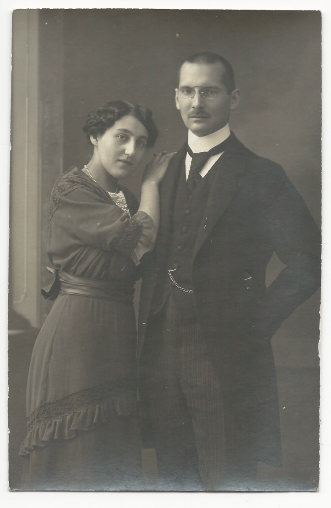 This vintage real photo postcard features a lovely well dressed couple. Perhaps this is a wedding photograph. The woman in this photo appears lovely and loving. The gentleman can best be described as intellectual and austere. This image was found in a collection of 1920’s German postcards. The postcard is in very good condition (see scans).