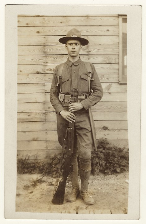 This vintage real photo postcard features a portrait of two French World War I infantry men. The French often informally referred to World War I infantry men as “Poilu”. The term can be translated as “hairy ones” and it was used as a form of endearment. Many of these men came from rural background and sported beards and bushy mustaches. They were known as tough and brave but not exactly obedient to their officers.The men in this photo are wearing pins on their collars which indicate that one soldier is from the 24th and the other is from the 36th infantry regiment. One soldier has a patch on his upper left sleeve. What does the patch represent? The previous owner of this photo postcard asserted that the patch indicates that the men were members of the telegraph corps. I can not confirm that claim. This vintage postcard is in good condition (see scans).